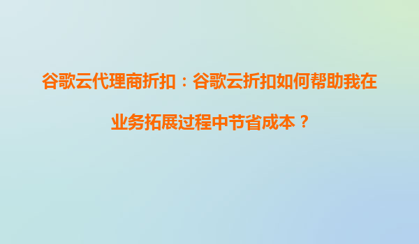 2025-09-05谷歌云代理商折扣:谷歌云折扣是否適合中小型企業(yè)使用? 隨著云計(jì)算技術(shù)的快速發(fā)展,越來越多的中小型企業(yè)開始尋求高效、靈活且經(jīng)濟(jì)的云服務(wù)解決方案。谷歌云(GoogleCloud)作為全球領(lǐng)先的云服務(wù)平臺之...