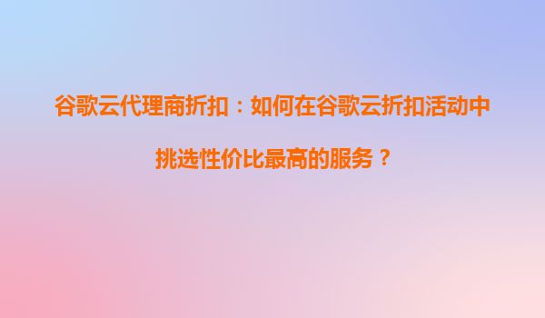 2025-09-05谷歌云代理商折扣:獲取更多云資源的高效方式 在當(dāng)今數(shù)字化時(shí)代,云計(jì)算已成為企業(yè)快速擴(kuò)展業(yè)務(wù)、優(yōu)化運(yùn)營成本的關(guān)鍵工具。作為全球領(lǐng)先的云服務(wù)提供商之一,谷歌云(GoogleCloudPlatform,GCP)憑借其卓越的性能...