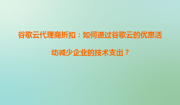 4008-020-360 谷歌云代理商折扣:如何通過谷歌云的優(yōu)惠活動減少企業(yè)的技術(shù)支出? 一、谷歌云的核心優(yōu)勢與企業(yè)價值 谷歌云(GoogleCloudPlatform,GCP)作為全球領(lǐng)先的云服務(wù)提供商,為企業(yè)提供了高性能、安全可靠...