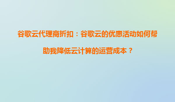 2025-09-04谷歌云代理商折扣:如何使用谷歌云的折扣政策提高我的云應(yīng)用運(yùn)行效率? 一、谷歌云的優(yōu)勢與折扣政策的價值 谷歌云(GoogleCloudPlatform,GCP)是全球領(lǐng)先的云計(jì)算服務(wù)提供商之一,憑借其高性能的計(jì)算資...