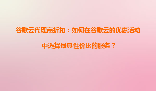 2025-09-02谷歌云代理商折扣:如何在谷歌云的優(yōu)惠活動(dòng)中選擇最具性價(jià)比的服務(wù)? 一、谷歌云的核心優(yōu)勢(shì) 在考慮通過代理商獲取谷歌云折扣前,首先需要理解谷歌云的核心競(jìng)爭(zhēng)力: 全球化基...