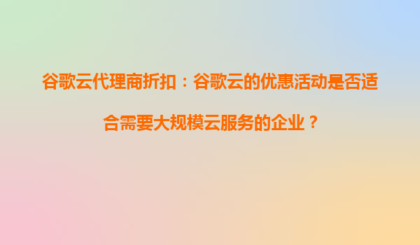 2025-09-03谷歌云代理商折扣:谷歌云的優(yōu)惠活動(dòng)是否適合需要大規(guī)模云服務(wù)的企業(yè)? 引言 隨著云計(jì)算技術(shù)的快速發(fā)展,越來(lái)越多的企業(yè)開始將業(yè)務(wù)遷移到云端。谷歌云(GoogleCloud)作為全球領(lǐng)先...