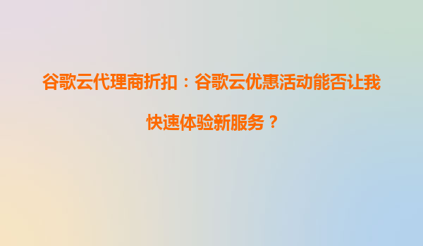 2025-08-31谷歌云代理商折扣:谷歌云優(yōu)惠活動能否讓我快速體驗新服務(wù)? 引言 在數(shù)字化轉(zhuǎn)型的浪潮中,云計算已成為企業(yè)提升效率、降低成本的核心工具。谷歌云(GoogleCloud)作為全球領(lǐng)先的云服務(wù)提供商...