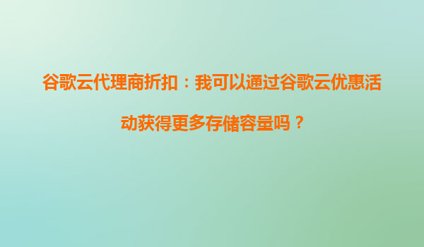 2025-08-31谷歌云代理商折扣:我可以通過谷歌云優(yōu)惠活動獲得更多存儲容量嗎? 一、谷歌云的優(yōu)勢與存儲服務(wù) 谷歌云(GoogleCloudPlatform,GCP)作為全球領(lǐng)先的云計算服務(wù)提供商,憑借其強大的基礎(chǔ)設(shè)施、高可用性和...