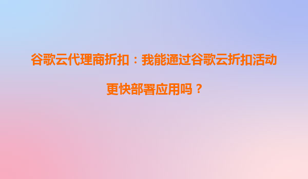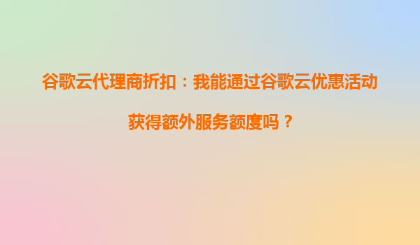 4008-020-360 谷歌云代理商折扣:我能通過谷歌云折扣活動(dòng)更快部署應(yīng)用嗎? 一、谷歌云的核心優(yōu)勢(shì) 谷歌云(GoogleCloudPlatform,GCP)作為全球領(lǐng)先的云計(jì)算服務(wù)提供商,憑...