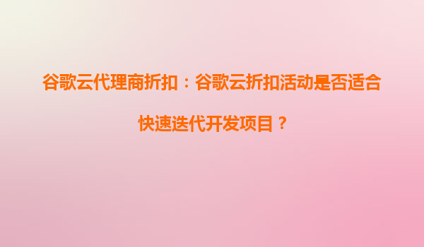 2025-08-25谷歌云代理商折扣:助力快速迭代開發(fā)項目的理想選擇 快速迭代開發(fā)的核心需求 在當今數(shù)字化時代,快速迭代開發(fā)已成為企業(yè)保持競爭力的關鍵。這類項目通常需要頻繁的代碼部署、測試環(huán)境快速搭建以及彈性伸縮...