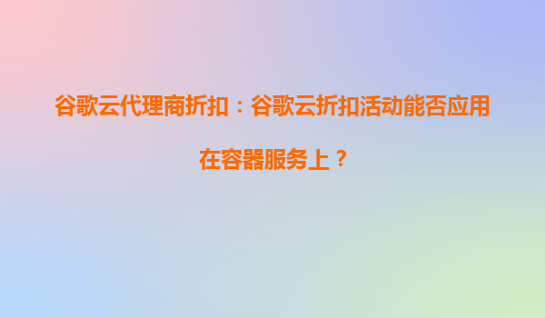 2025-08-25谷歌云代理商折扣:谷歌云折扣活動(dòng)能否應(yīng)用在容器服務(wù)上? 引言 隨著云計(jì)算技術(shù)的快速發(fā)展,越來(lái)越多的企業(yè)開(kāi)始采用云服務(wù)來(lái)優(yōu)化其IT基礎(chǔ)設(shè)施。谷歌云(GoogleCloud)作為全球領(lǐng)先的云服務(wù)提供商之一,憑...