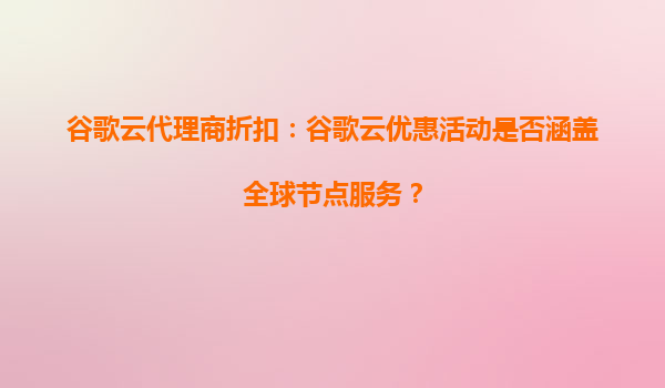 2025-08-24谷歌云代理商折扣:谷歌云優(yōu)惠活動是否涵蓋全球節(jié)點(diǎn)服務(wù)? 引言 隨著云計算技術(shù)的快速發(fā)展,越來越多的企業(yè)選擇將業(yè)務(wù)遷移到云端。谷歌云(GoogleCloud)作為全球領(lǐng)先的云計算服務(wù)提供商之一,憑...