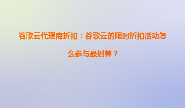 2025-08-23谷歌云代理商折扣:如何最劃算地參與谷歌云限時(shí)折扣活動(dòng)? 一、谷歌云的核心優(yōu)勢 在探討如何參與谷歌云限時(shí)折扣前,首先需要了解谷歌云的核心競爭力: 全球基礎(chǔ)設(shè)施:覆蓋200+國家/地區(qū)的30+數(shù)據(jù)中心...