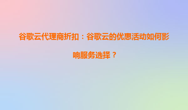 2025-08-23谷歌云代理商折扣:如何通過優(yōu)惠活動(dòng)優(yōu)化服務(wù)選擇 谷歌云的核心優(yōu)勢與市場競爭力 作為全球領(lǐng)先的云計(jì)算平臺(tái),谷歌云憑借其強(qiáng)大的基礎(chǔ)設(shè)施、創(chuàng)新的技術(shù)解決方案和靈活的定價(jià)模式,持續(xù)為企業(yè)提供數(shù)字化轉(zhuǎn)型動(dòng)力...