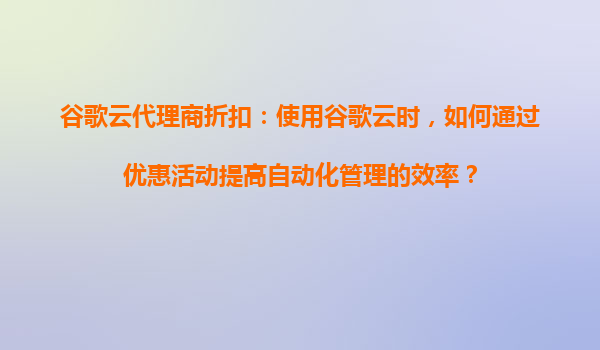 谷歌云代理商折扣:如何通過優惠活動提升自動化管理效率 在當今數字化時代,企業越來越依賴云計算來優化運營、降低成本并提高效率。谷歌云(GoogleCloud)作為全球領先的云服務提供商之一,憑借其強大的基礎設...