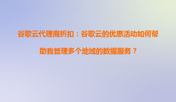 2025-08-23谷歌云代理商折扣:如何通過優惠活動高效管理多地域數據服務? 一、全球化數據服務的挑戰與需求 隨著企業業務全球化,數據服務需要跨越不同地域部署以滿足合規...