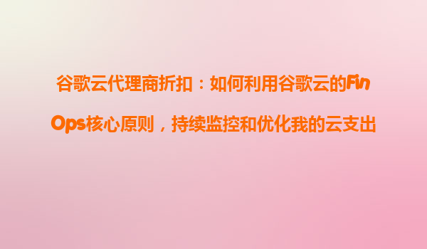 2025-11-03谷歌云代理商折扣:如何利用谷歌云的FinOps核心原則,持續(xù)監(jiān)控和優(yōu)化我的云支出? 引言:云成本優(yōu)化的重要性 在云計算時代,企業(yè)越來越多地依賴云服務來托管應用程序、存儲數(shù)據(jù)和運行業(yè)務關鍵型工作負載。...