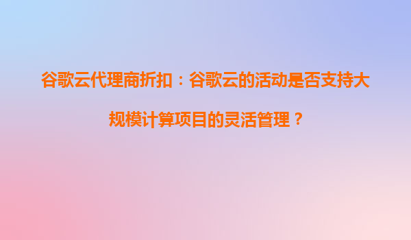 谷歌云代理商折扣:谷歌云的活動是否支持大規模計算項目的靈活管理? 前言 在當今快速發展的云計算領域,企業越來越依賴云服務來滿足其大規模計算項目的需求。谷歌云(GoogleCloud)作...