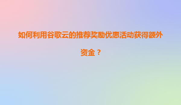 2025-11-11如何利用谷歌云推薦獎勵優(yōu)惠活動獲得額外資金? 一、谷歌云推薦獎勵計(jì)劃概述 谷歌云(GoogleCloud)的推薦獎勵計(jì)劃是吸引新用戶注冊并使用其服務(wù)的優(yōu)惠政策。通過該計(jì)劃,現(xiàn)有用戶推薦他人成功開通谷歌云...