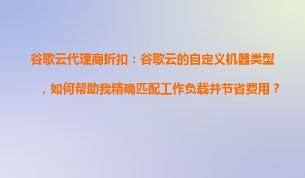 2025-10-29谷歌云代理商折扣:谷歌云的自定義機(jī)器類型,如何幫助您精確匹配工作負(fù)載并節(jié)省費用? 引言 在當(dāng)今競爭激烈的商業(yè)環(huán)境中,企業(yè)需要高效、靈活且經(jīng)濟(jì)的云計算解決方案來支持其業(yè)務(wù)發(fā)展。谷歌云平臺(GoogleCloudPl...