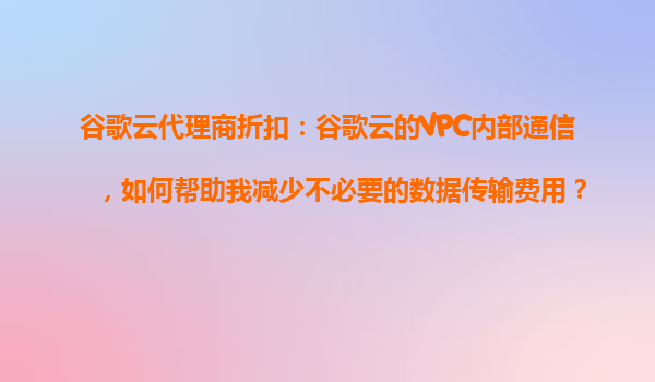 2025-10-29谷歌云代理商折扣:如何通過(guò)VPC內(nèi)部通信減少不必要的數(shù)據(jù)傳輸費(fèi)用 引言:云成本優(yōu)化的重要性 在云計(jì)算時(shí)代,企業(yè)越來(lái)越依賴云服務(wù)來(lái)支撐業(yè)務(wù)運(yùn)作,但隨之而來(lái)的...