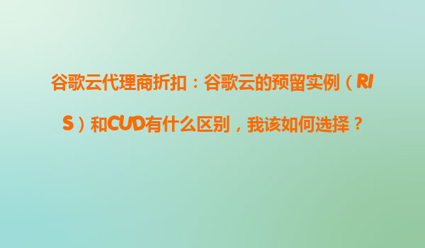 2025-10-29谷歌云代理商折扣:預(yù)留實(shí)例(RIS)與承諾使用折扣(CUD)的區(qū)別與選擇指南 理解谷歌云的核心成本優(yōu)化工具 谷歌云作為全球領(lǐng)先的云計(jì)算平臺(tái),提供兩種主要成本優(yōu)化方案:預(yù)...