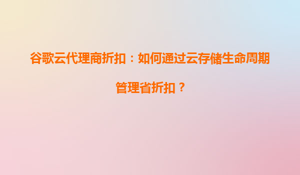4008-020-360 谷歌云代理商折扣:如何通過(guò)云存儲(chǔ)生命周期管理節(jié)省成本? 一、谷歌云存儲(chǔ)的成本挑戰(zhàn)與優(yōu)化方向 隨著企業(yè)數(shù)據(jù)量的指數(shù)級(jí)增長(zhǎng),云存儲(chǔ)成本已成為IT預(yù)算的重要組成部分。谷歌云存儲(chǔ)(GoogleCloudStora...