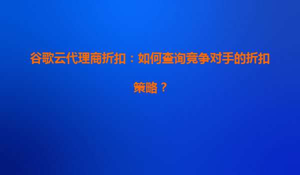 2025-04-08谷歌云代理商折扣:如何查詢競(jìng)爭(zhēng)對(duì)手的折扣策略? 在云計(jì)算市場(chǎng)競(jìng)爭(zhēng)日益激烈的今天,企業(yè)選擇云服務(wù)時(shí)不僅關(guān)注技術(shù)能力,更重視成本優(yōu)化。谷歌云(GoogleCloud)及其代理商通過(guò)靈活的折扣策略吸引...