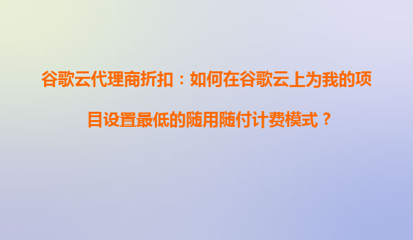 2025-10-26谷歌云代理商折扣:如何設(shè)置最低隨用隨付計費(fèi)模式 在當(dāng)今數(shù)字化時代,云計算已成為企業(yè)提升效率、降低成本的關(guān)鍵工具。谷歌云作為全球領(lǐng)先的云計算平臺之一,以其高性能、靈活性和安全性著稱。許多用戶希望通過代理...