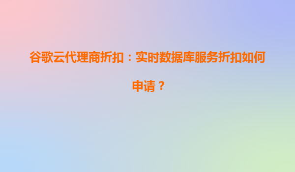 2025-04-07谷歌云代理商折扣:實(shí)時(shí)數(shù)據(jù)庫(kù)服務(wù)折扣申請(qǐng)指南 一、為什么選擇谷歌云實(shí)時(shí)數(shù)據(jù)庫(kù)服務(wù)? 谷歌云的實(shí)時(shí)數(shù)據(jù)庫(kù)服務(wù)(如FirebaseRealtimeDatabase和CloudFirestore)憑借其高可用性、低延...