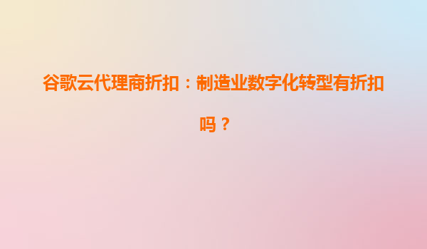 2025-04-07谷歌云代理商折扣:制造業(yè)數(shù)字化轉(zhuǎn)型有折扣嗎? 一、制造業(yè)數(shù)字化轉(zhuǎn)型的痛點與需求 在制造業(yè)領(lǐng)域,數(shù)字化轉(zhuǎn)型已成為提升生產(chǎn)效率、優(yōu)化供應(yīng)鏈管理及實現(xiàn)智能化生產(chǎn)的核心路徑。然而,企業(yè)常面臨以下挑...