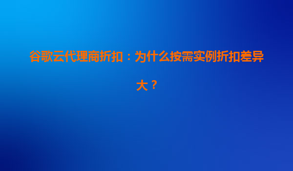 2025-04-06谷歌云代理商折扣:按需實例折扣差異大的原因解析 一、谷歌云與代理商的協(xié)作模式 谷歌云(GoogleCloud)作為全球領先的公有云服務商,通過直接銷售與代理商渠道并...