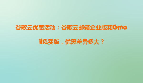 4008-020-360 谷歌云企業(yè)版郵箱vsGmail免費(fèi)版:核心差異與優(yōu)惠活動(dòng)解析 隨著企業(yè)數(shù)字化轉(zhuǎn)型加速,谷歌云郵箱企業(yè)版(GoogleWorkspace)與Gmail免費(fèi)版的差異成為用戶關(guān)注焦點(diǎn)。本文將從功能...