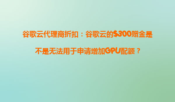 2025-10-24谷歌云代理商折扣:谷歌云的$300贈(zèng)金是否可用于申請(qǐng)?jiān)黾覩PU配額? 前言 隨著云計(jì)算技術(shù)的快速發(fā)展,越來越多的企業(yè)和開發(fā)者選擇使用谷歌云(GoogleCloudPlatform,簡稱GCP)來部署和管理他們的業(yè)務(wù)。...