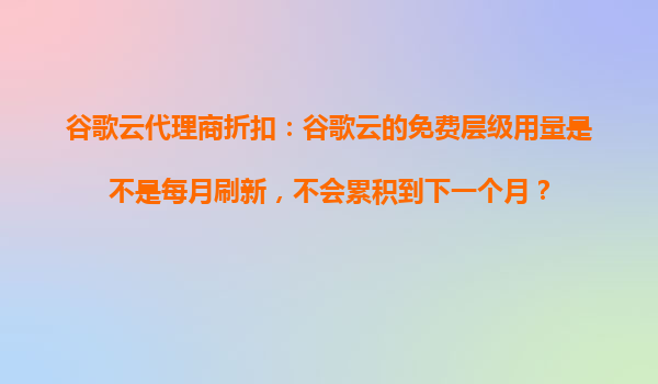 2025-10-25谷歌云代理商折扣:谷歌云的免費(fèi)層級(jí)用量是不是每月刷新,不會(huì)累積到下一個(gè)月? 谷歌云免費(fèi)層級(jí)的核心規(guī)則 谷歌云(GoogleCloudPlatform,GCP)為吸引新用戶,提供了永久免費(fèi)層級(jí)(Fre...