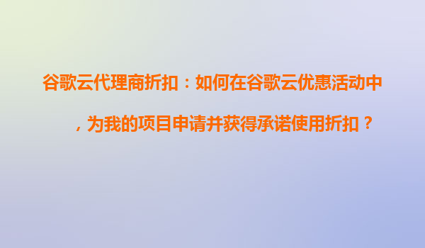 4008-020-360 谷歌云代理商折扣:如何在谷歌云優(yōu)惠活動(dòng)中為項(xiàng)目申請(qǐng)并獲得承諾使用折扣? 引言 隨著云計(jì)算技術(shù)的飛速發(fā)展,越來越多的企業(yè)選擇將業(yè)務(wù)遷移到云端,以提高靈活性、降低成本并增強(qiáng)安全性。谷歌...
