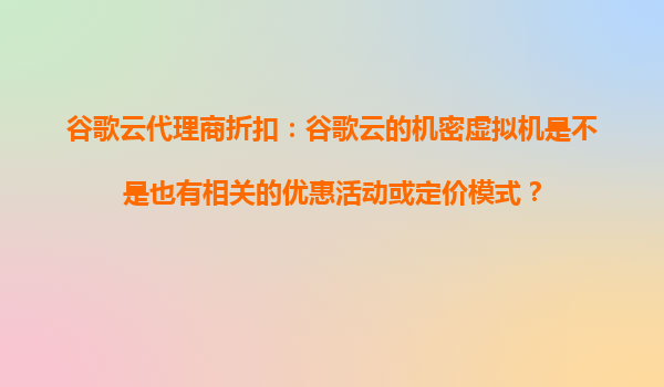 2025-10-24谷歌云代理商折扣:谷歌云機(jī)密虛擬機(jī)優(yōu)惠活動(dòng)與定價(jià)模式解析 一、谷歌云代理商折扣的核心優(yōu)勢 谷歌云作為全球領(lǐng)先的云計(jì)算服務(wù)提供商,其代理商體系為客戶提供了靈活的采購渠道和更具競爭力的價(jià)格方案...