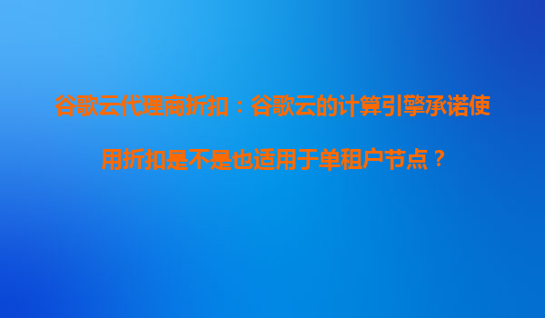 2025-10-24谷歌云代理商折扣解析:計(jì)算引擎承諾使用折扣是否適用于單租戶節(jié)點(diǎn)? 一、谷歌云承諾使用折扣的核心機(jī)制 谷歌云的計(jì)算引擎承諾使用折扣(CommittedUseDiscounts,CUD)是谷歌云為用戶長期穩(wěn)定使用資源提...