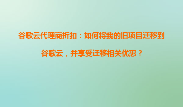 2025-10-23谷歌云代理商折扣:如何將我的舊項(xiàng)目遷移到谷歌云,并享受遷移相關(guān)優(yōu)惠? 一、為什么選擇谷歌云進(jìn)行項(xiàng)目遷移? 谷歌云(GoogleCloudPlatform,GCP)作為全球領(lǐng)先的云計(jì)算服務(wù)提供商,憑借其強(qiáng)大的基礎(chǔ)設(shè)...
