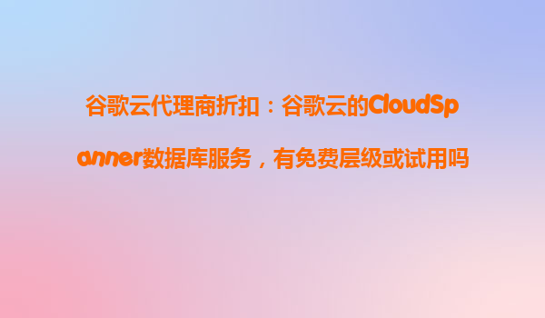 2025-10-21谷歌云代理商折扣:谷歌云的CloudSpanner數(shù)據(jù)庫服務(wù),有免費層級或試用嗎? 一、谷歌云CloudSpanner簡介 谷歌云CloudSpanner是全球首個真正意義上的分布式關(guān)系型數(shù)據(jù)...