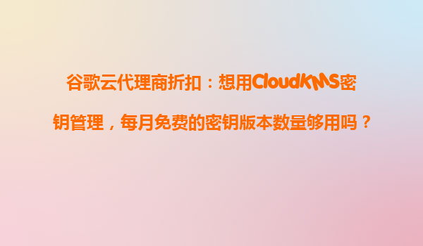 4008-020-360 谷歌云代理商折扣:CloudKMS密鑰管理服務(wù)免費版本是否夠用? 一、谷歌云代理商折扣的價值 通過官方授權(quán)的谷歌云代理商開通服務(wù),通常可獲得5%-20%的持續(xù)折扣。這不僅適用于常規(guī)計算資源,也包含CloudKMS...