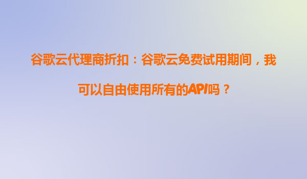 2025-10-21谷歌云代理商折扣:谷歌云免費試用期間,我可以自由使用所有的API嗎? 谷歌云免費試用概述 谷歌云(GoogleCloudPlatform,GCP)為新用戶提供300美元的免費試用額度,有效期為12個月。在此期...