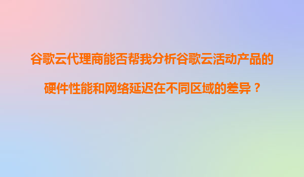 2025-11-08谷歌云代理商如何幫助分析不同區(qū)域的硬件性能與網(wǎng)絡(luò)延遲差異 引言 隨著全球數(shù)字化進(jìn)程的加速,企業(yè)對于云計(jì)算服務(wù)的需求日益增長。谷歌云(GoogleCloud)作為全球領(lǐng)先的云計(jì)算平臺(tái)之一,以其高性能的...