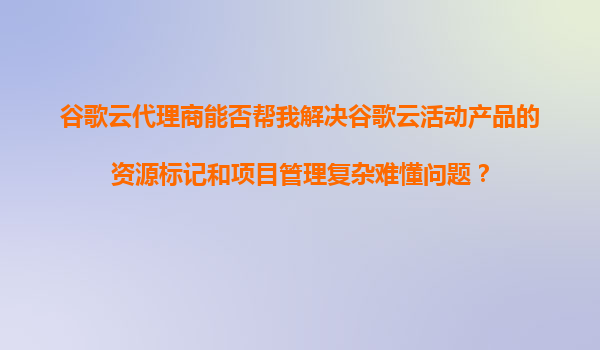 2025-11-08谷歌云代理商能否幫我解決谷歌云活動(dòng)產(chǎn)品的資源標(biāo)記和項(xiàng)目管理復(fù)雜難懂問題? 引言 隨著企業(yè)數(shù)字化轉(zhuǎn)型的加速,云計(jì)算平臺(tái)已成為企業(yè)IT架構(gòu)的核心組成部分。谷...
