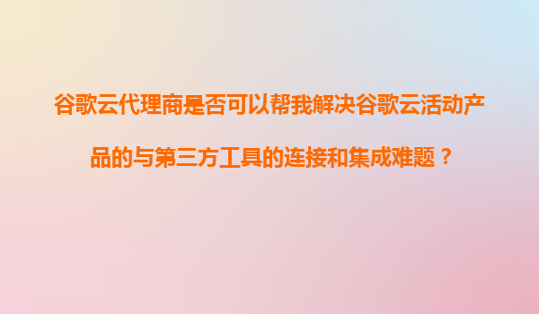 2025-11-08谷歌云代理商如何助力第三方工具的連接與集成 在當(dāng)今數(shù)字化時(shí)代,企業(yè)往往需要將大量第三方工具與云服務(wù)平臺(tái)進(jìn)行高效整合。谷歌云代理商在此發(fā)揮著關(guān)鍵作用,他們不僅熟悉谷歌云平臺(tái)(GoogleCloudPlatform,GCP...