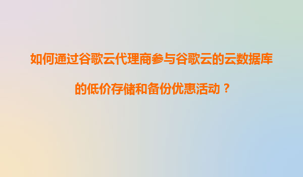 2025-11-08如何通過谷歌云代理商參與谷歌云的云數(shù)據(jù)庫低價(jià)存儲(chǔ)和備份優(yōu)惠活動(dòng)? 一、谷歌云數(shù)據(jù)庫低價(jià)存儲(chǔ)與備份的價(jià)值 谷歌云數(shù)據(jù)庫(如CloudSQL、Firestore、Spanner等)提供穩(wěn)定、高性能的存儲(chǔ)方案,但其成本可能...