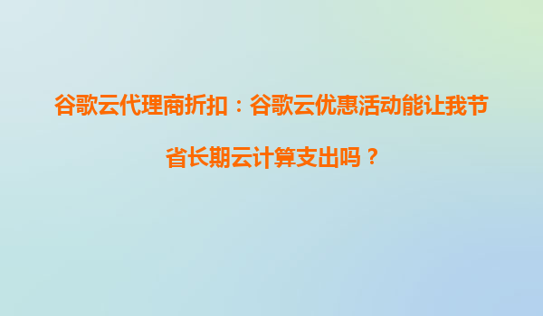 2025-10-16谷歌云代理商折扣:谷歌云優(yōu)惠活動(dòng)能讓我節(jié)省長期云計(jì)算支出嗎? 隨著云計(jì)算技術(shù)的普及,越來越多的企業(yè)選擇將業(yè)務(wù)遷移到云端。谷歌云(GoogleCloudPlatform,簡稱GCP)作為全球領(lǐng)先的云服務(wù)提供商之一,憑借...