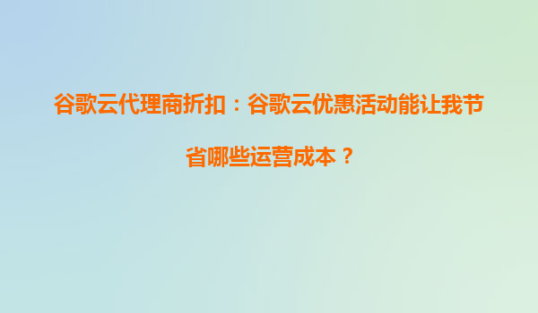 2025-10-15谷歌云代理商折扣:谷歌云優(yōu)惠活動能讓我節(jié)省哪些運營成本? 引言 在數(shù)字化轉型的浪潮中,云計算已成為企業(yè)提升效率、降低成本的核心工具。作為全球領先的云服務提供商...