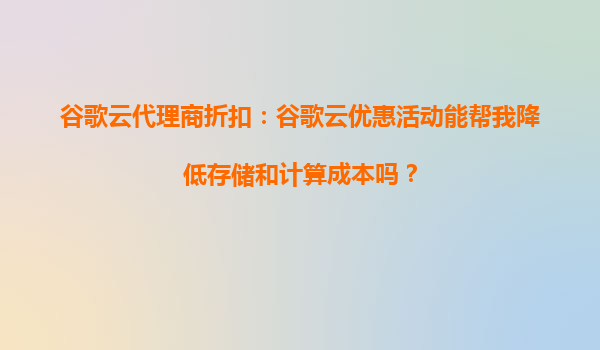 2025-10-15谷歌云代理商折扣:谷歌云折扣活動是否適合短期項目使用? 一、谷歌云的核心優(yōu)勢 谷歌云(GoogleCloudPlatform,GCP)作為全球領先的云計算服務提供商,憑借其強...