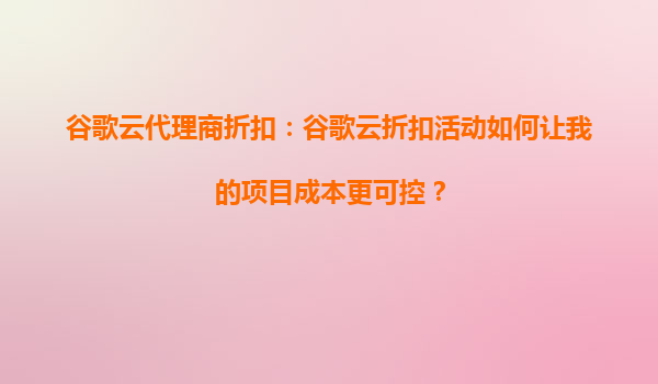 2025-10-16谷歌云代理商折扣:谷歌云折扣活動如何讓我的項目成本更可控? 引言:云計算時代下的成本挑戰(zhàn) 在數(shù)字化轉型的浪潮中,云計算已成為企業(yè)和開發(fā)者不可或缺的基礎設施。然而,隨著業(yè)務的擴展和應用的復雜化,云服...