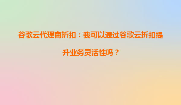 2025-10-14谷歌云代理商折扣:我可以通過谷歌云折扣提升業(yè)務靈活性嗎? 引言 在當今數(shù)字化快速發(fā)展的時代,云計算已成為企業(yè)提升運營效率、降低成本并增強業(yè)務靈活性的關...