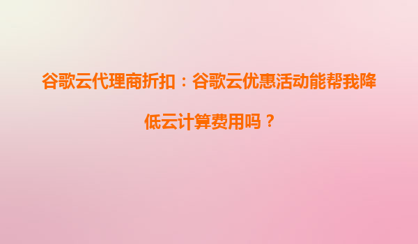 2025-10-14谷歌云代理商折扣:我能通過谷歌云折扣獲得哪些技術資源? 引言 在當今數(shù)字化時代,云計算已成為企業(yè)技術架構的核心組成部分。谷歌云(GoogleCloud)作為全球領先的云計算服務提供商之一,憑借其強大的技...