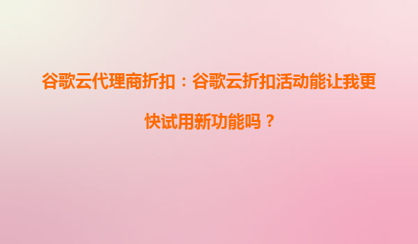 2025-10-11谷歌云代理商折扣:谷歌云最新優(yōu)惠活動是否適合企業(yè)擴展? 引言 隨著數(shù)字化轉(zhuǎn)型的加速,云計算已成為企業(yè)擴展業(yè)務(wù)的核心工具之一。谷歌云(GoogleCloud)作為...