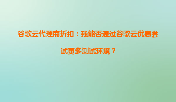 2025-10-03谷歌云代理商折扣:能否通過谷歌云優(yōu)惠嘗試更多測試環(huán)境? 一、谷歌云測試環(huán)境的價值與挑戰(zhàn) 在數(shù)字化轉(zhuǎn)型的浪潮中,云計算已成為企業(yè)構(gòu)建測試環(huán)境的首選方案。谷歌云(GoogleCloud)憑借其全...